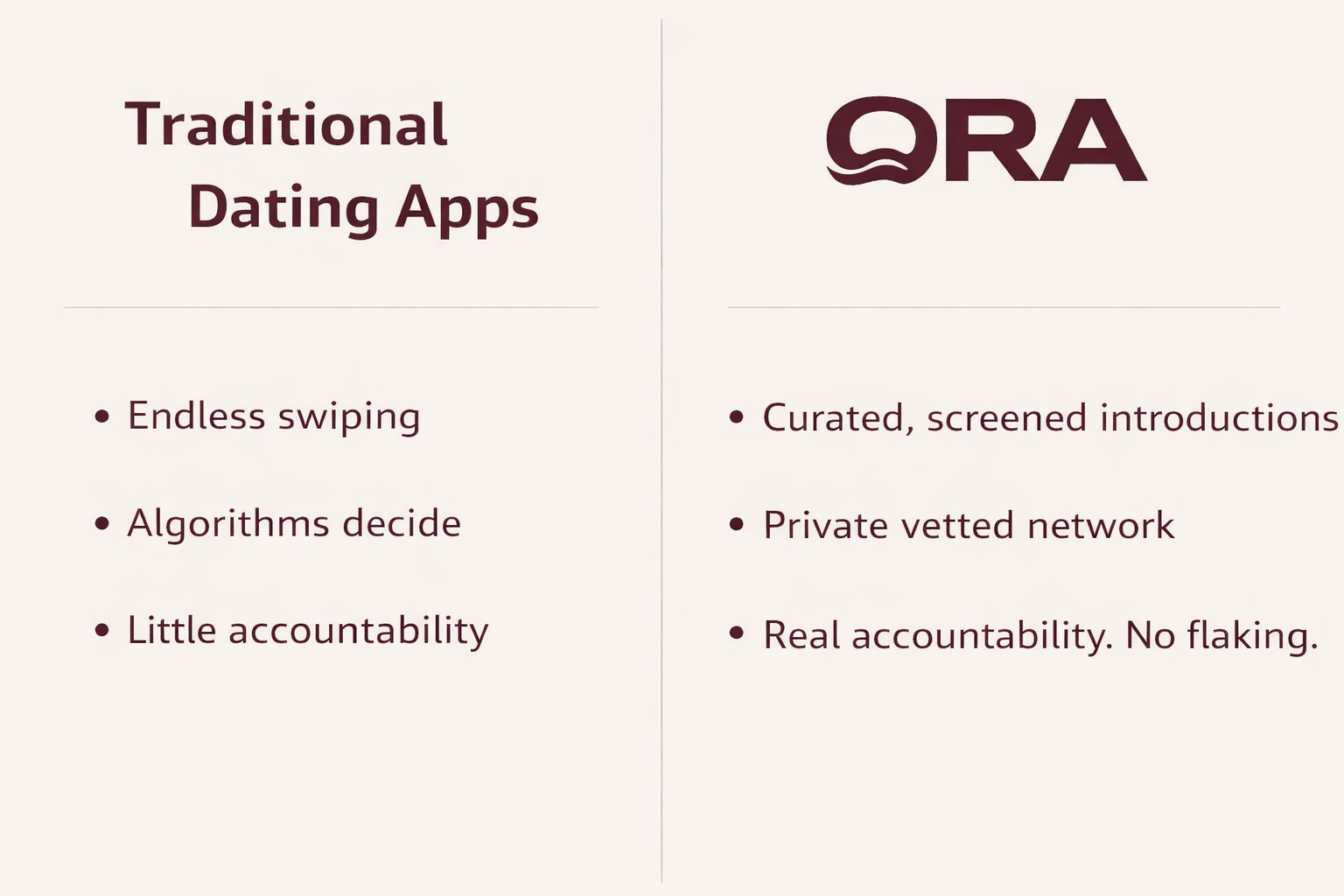 ora is an invite-only dating network. Each introduction is carefully curated to bring together like-minded individuals seeking meaningful connections.